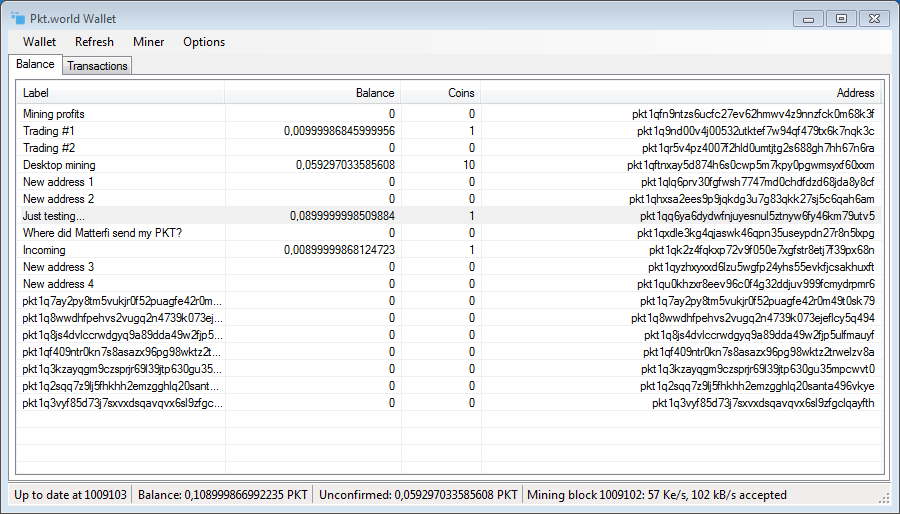 A blockchain wallet allows you to receive, store and transfer your coins on the blockchain. There are several different wallets for PKT cash. The Pkt.world Wallet can be used on Windows, Mac OS, Linux and Android by traders and miners, and even has a built-in PKT cash miner to start mining on your desktop computer right away. If you are not mining PKT, you can use the Electrum wallet on a variety of operating systems. If you prefer to use a command line or want to create your own automation based on a JSON-RPC API, the original Command Line Wallet might be the right tool for you.